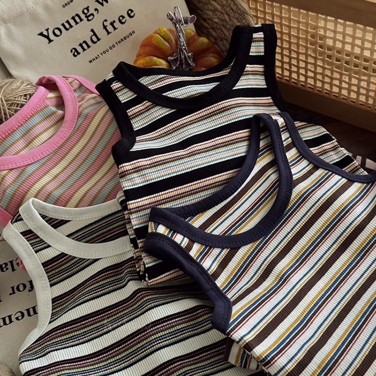 Korean style all-match sleeveless T-shirt girls summer new vintage striped female baby vest short sleeve 0011A039