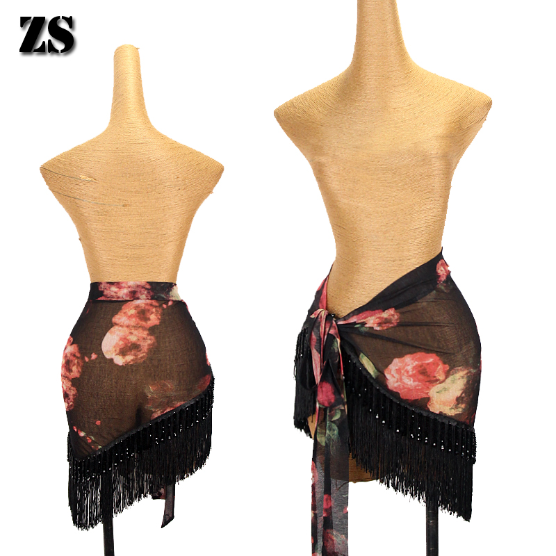 Versailles Rose] Latin Dance Skirt Crystal Tassel Short Hip Towel Female Adult Practice Dress Dance Belt L503