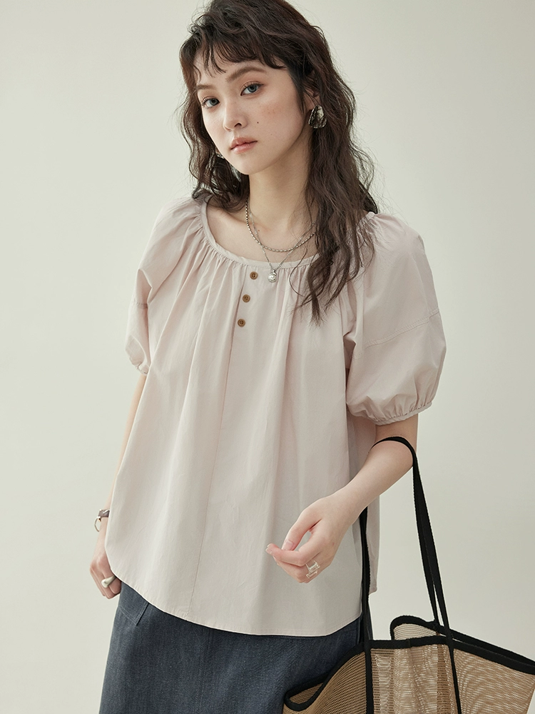 AMUU Beidao Age Reduction Solid Color Puff Sleeve Loose Shirt