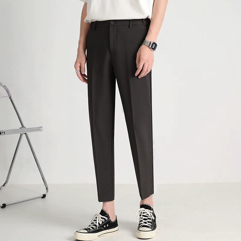 Light cooked wind Korean slim men’s trend nine -point trousers