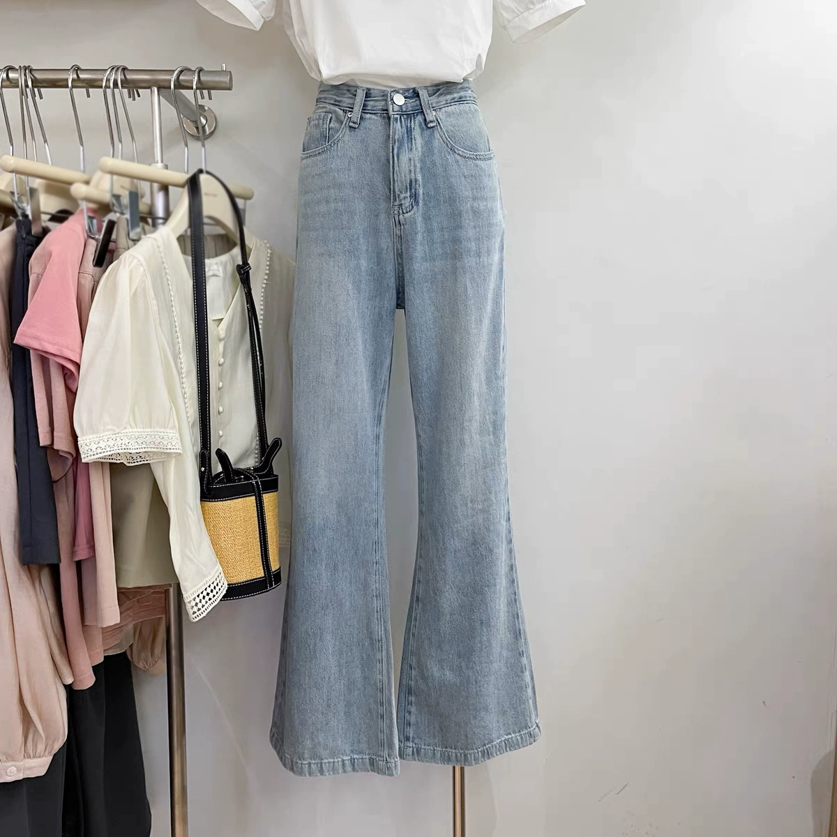 Dongdaemun Spring American Style High Waist Slightly Flared Jeans