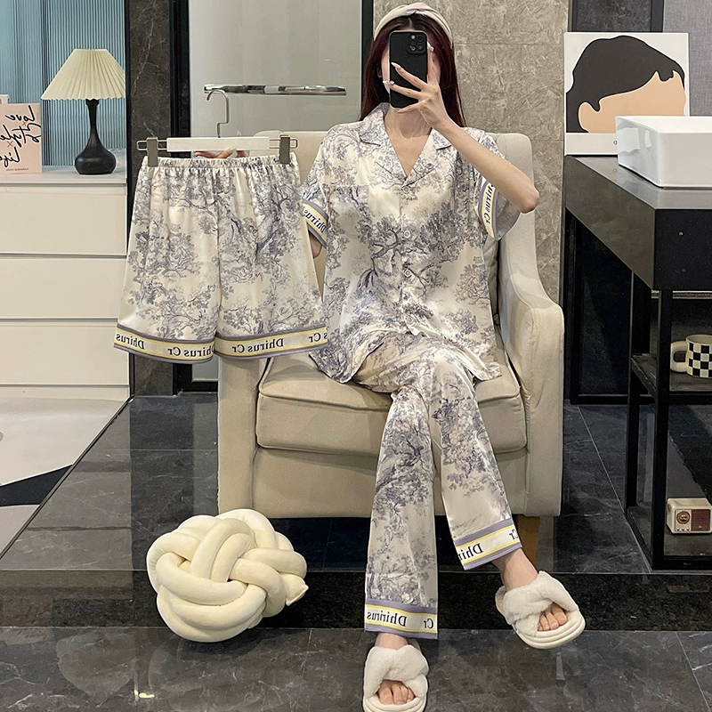 Women’s cool fashion imitation silk spring and autumn home wear pajamas