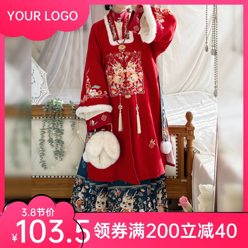 Zezhi original Hanfu women’s Lucky Dragon Longming collar long jacket fleece-lined thickened embroidered daily vest dress winter
