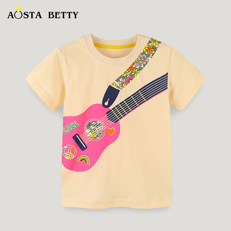 24 summer new girls’ T-shirt children’s guitar printed round neck top European and American style children’s cotton sweatshirt