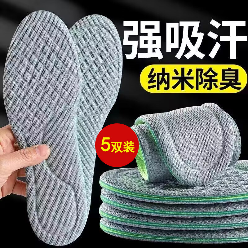 Summer nano antibacterial deodorant insoles men’s lightweight sweat-absorbent breathable wormwood soft bottom comfortable massage insoles women’s wholesale