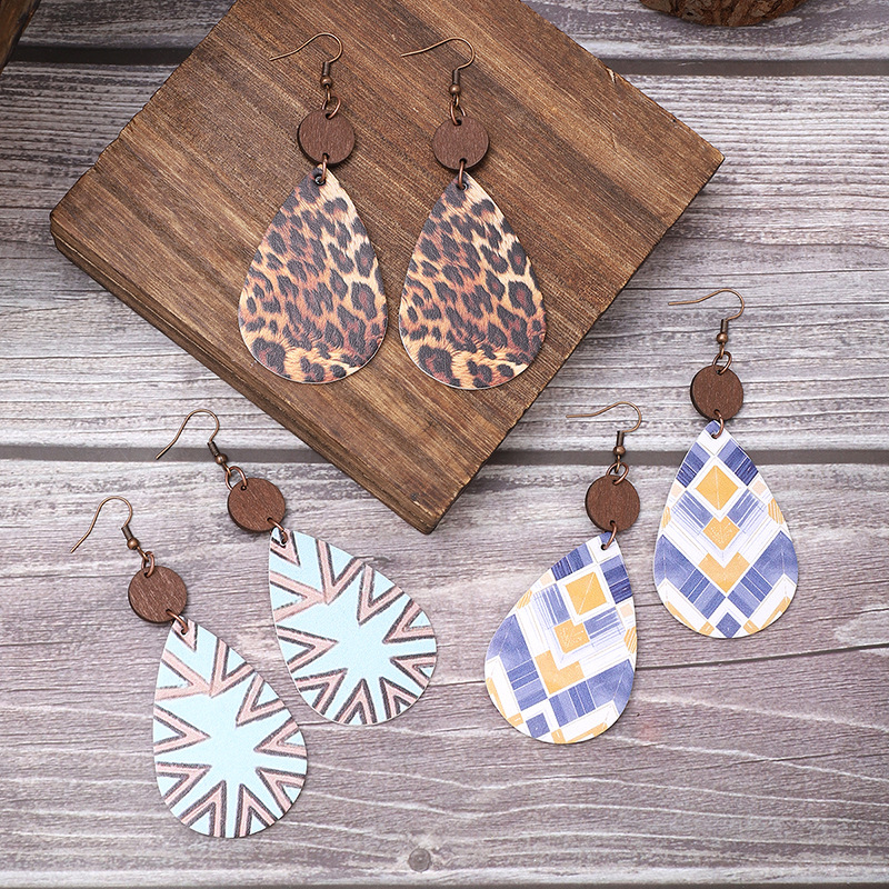 Cross-border Plaid irregular diamond leopard pattern earrings leather earrings AliExpress Amazon