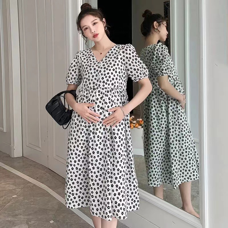 Pregnant women’s clothing summer nursing clothing fashion temperament V-neck floral out summer loose slim long dress