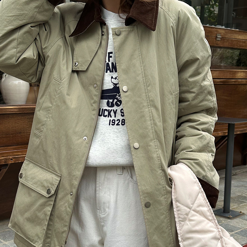Women’s Mid-length contrast color lapel cotton-padded coat, fashionable loose warm cotton-padded coat, 2023 Winter New