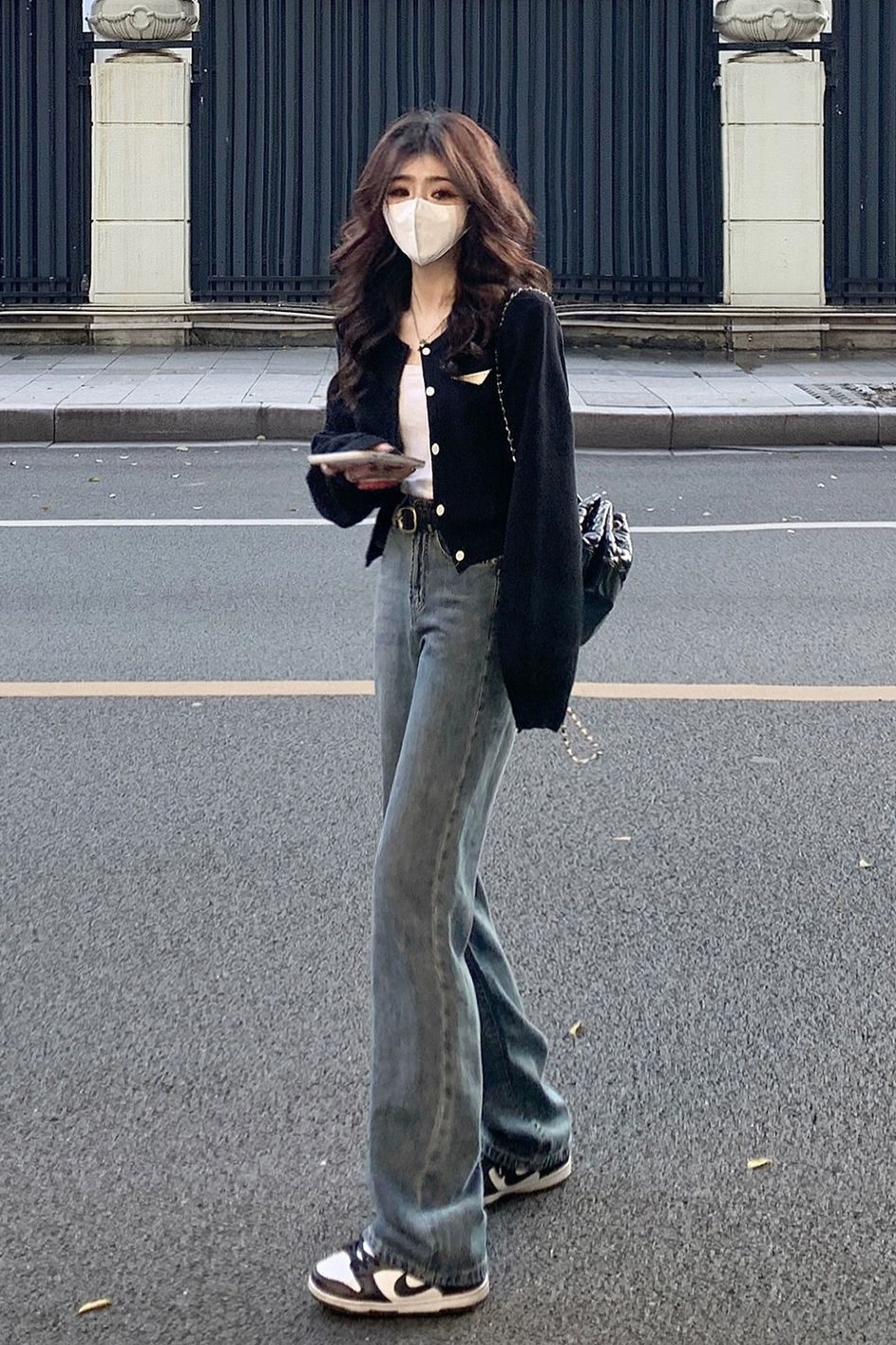 Black long-sleeved thin Dongguan knitted cardigan top