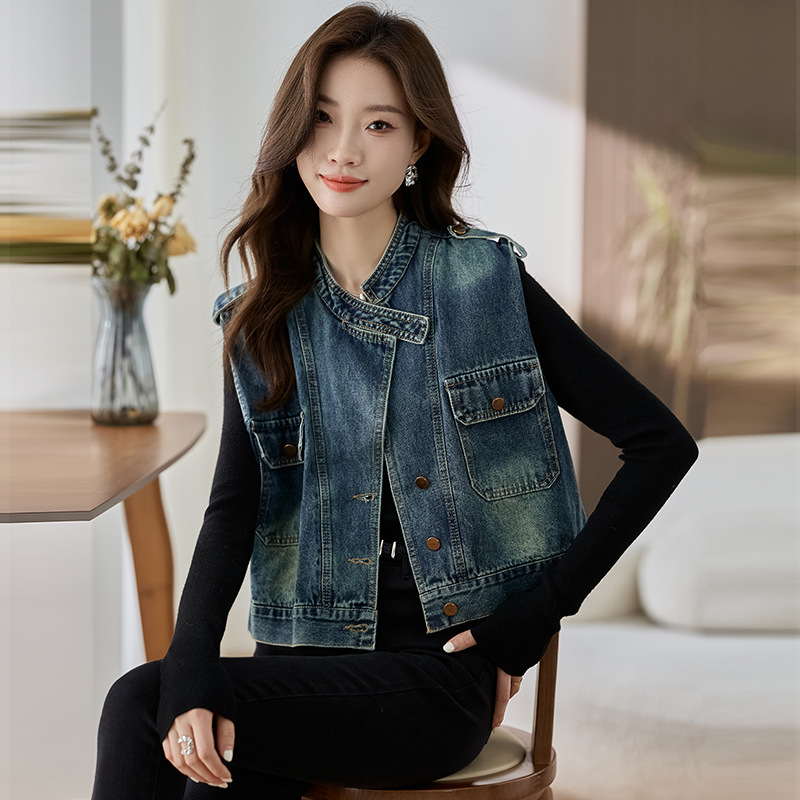 2024 Summer New Hong Kong-style Denim Loose Casual Vest All-match Coat Women