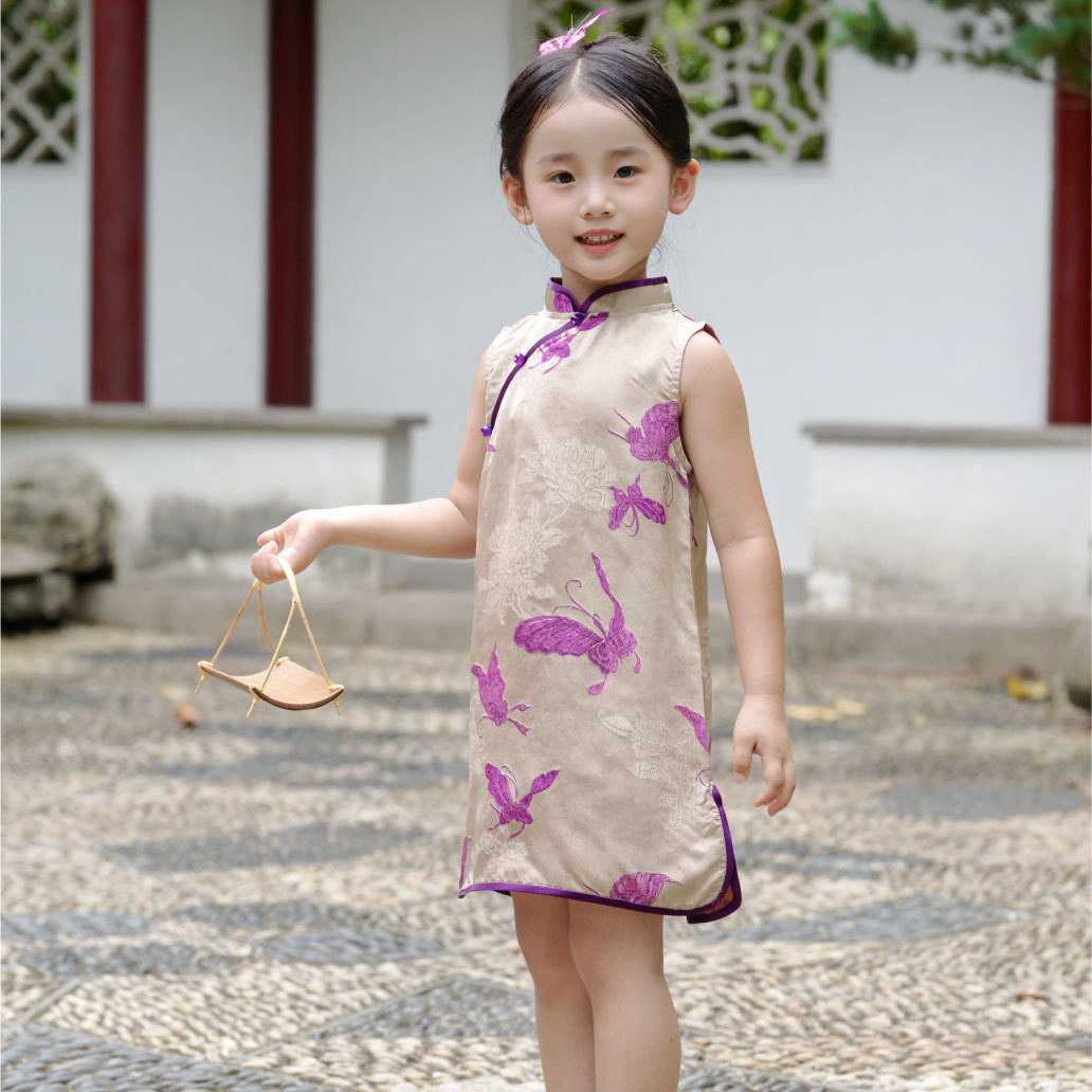 Girls’ Summer Cheongsam Dress Chinese Style Thin Children’s Cheongsam Vintage Solid Color Tang Suit Hanfu Children’s Clothing