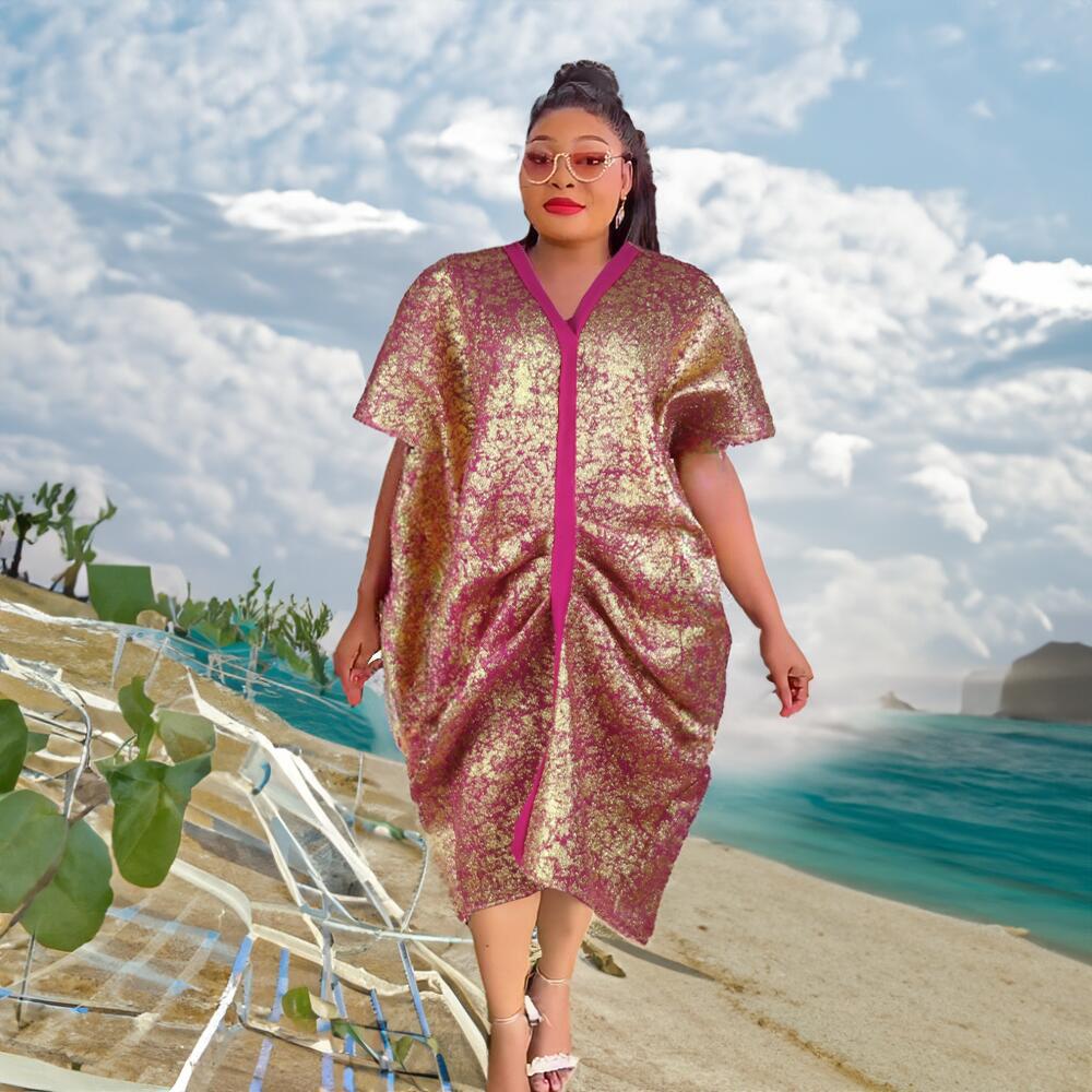 Cross-border Women’s bronzing dress V-neck short sleeve African fashion loose style