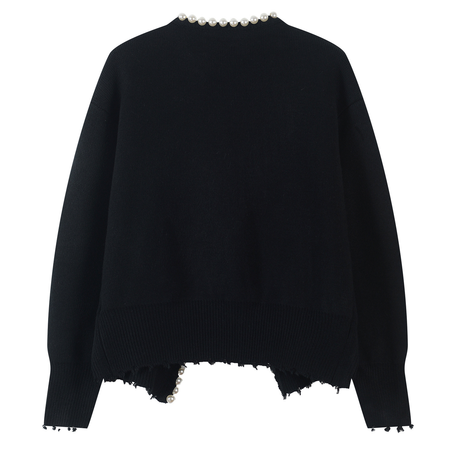 Harajuku Lazy Style 2020 Spring Internet Celebrant Sweet Ruffled Crewneck Pearl Rim Short Long Sleeve Knitted Jacket