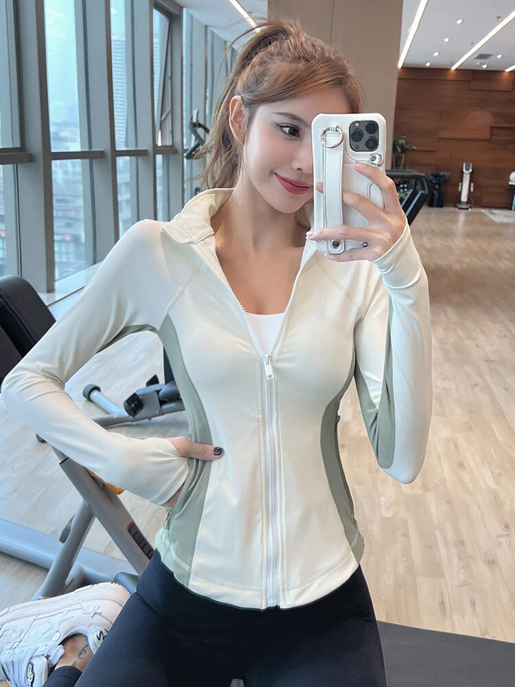 Contrast Color Sports Jacket Outdoor Riding Clothes Top Training Running Slim Slim Yoga Clothes Long Sleeve