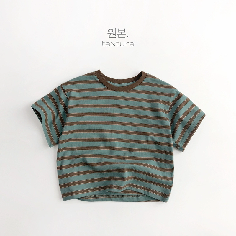 Contrasting stripes ~ retro flavor ~ Korean version of summer children’s short -sleeved cotton cotton T -shirts foreign and female treasures loose and versatile