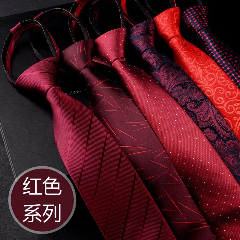 [Zipper + Hand Tie] Men’s Tie Easy to Pull Wedding Festive Wedding Tie Lazy Knot-Free Wine Red