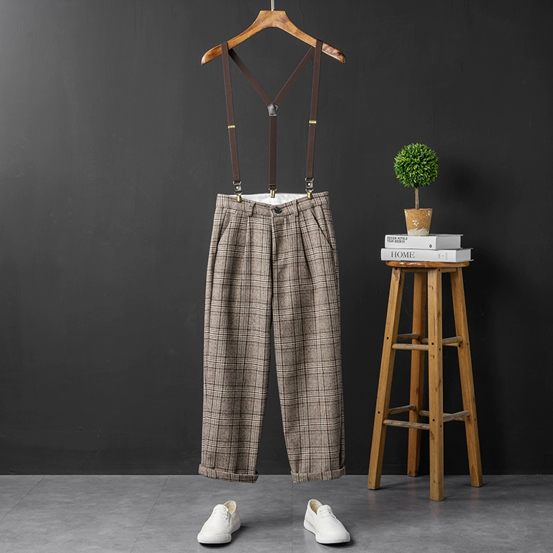 Youthful retro plaid groomsmen trousers gray artistic