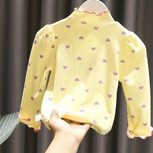 Baby Girl’s Fine Thread Fashion Love T-Shirt Baby Girl’s Autumn Half-turtleneck Girls’ Super Soft Stretch Base Shirt