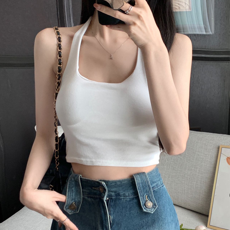 2024 Summer Pure Desire White Style with Chest Pad Lace-up Neck Vest Summer Slim-fit Beautiful Back Spice Girl Top