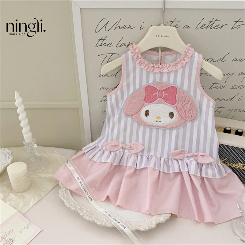 Ningli New Merlot Moe Funny Plush Doll Girl’s dress Summer Korean Style Bow Striped Pink Skirt