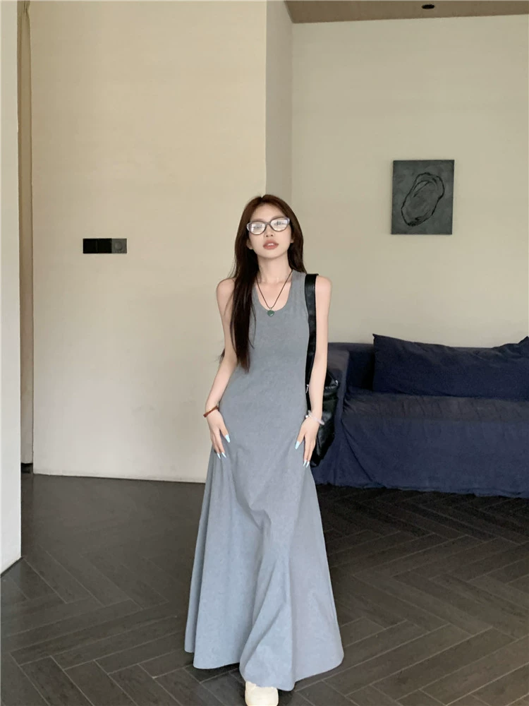 Gray Dress Summer Korean Style Casual A-Line Vest