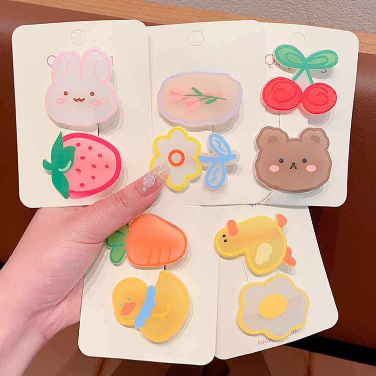 Cute New Style Cherry Acrylic Cartoon Duck Side Clip All-Match Little Girl Flower Hairpin Girl Hair Accessories Headdress