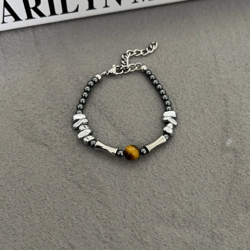 Light luxury retro men and women niche ins hip hop tiger eye stone