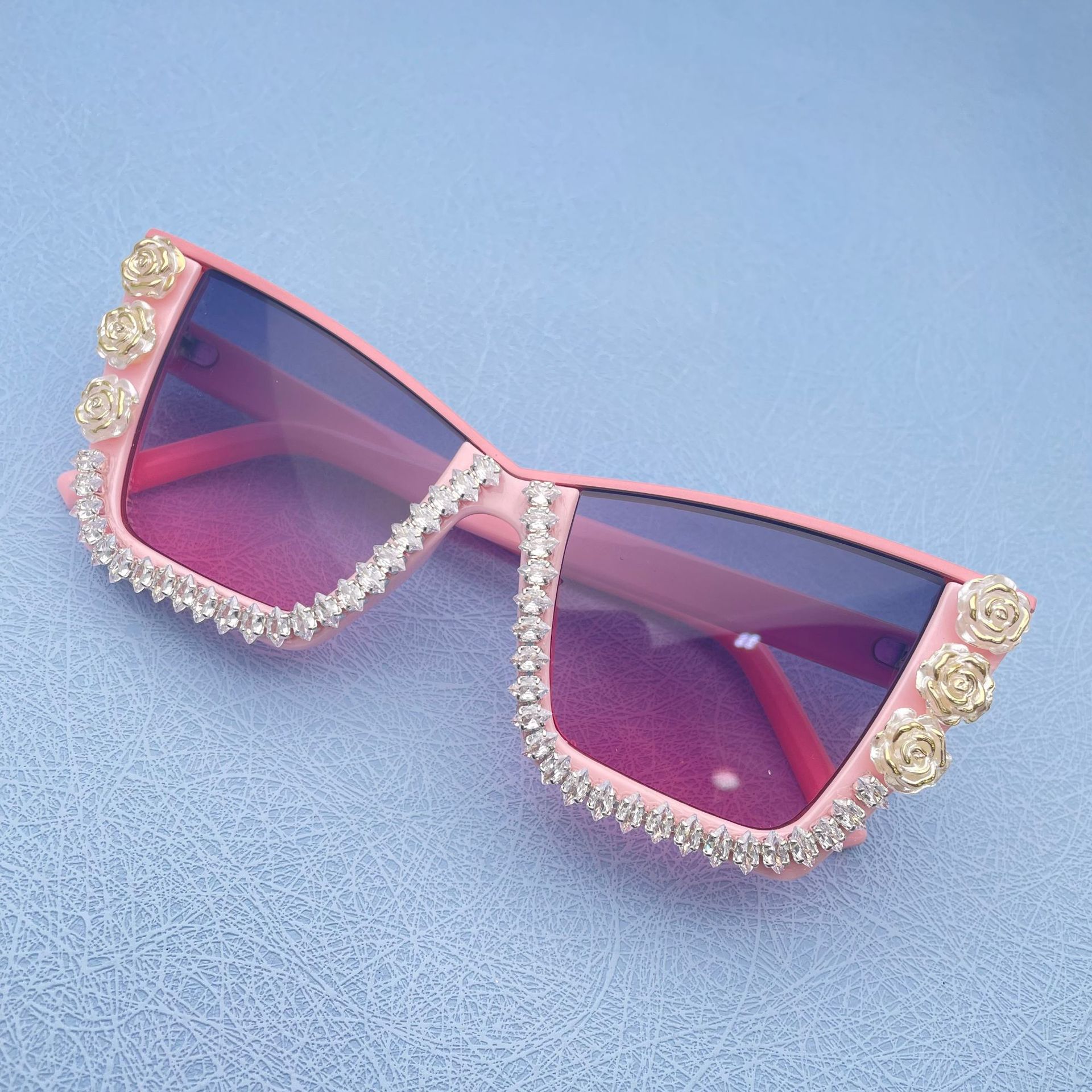 2023 European and American New Diamond cat eye large frame fashion trend Internet celebrity sunglasses Chanel style exaggerated women’s sunglasses