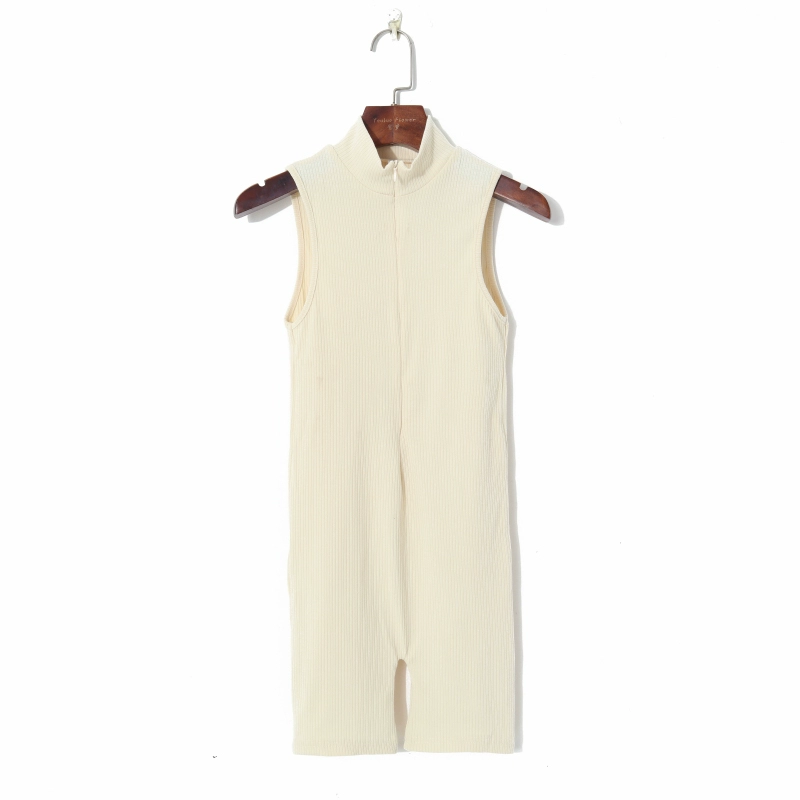 European and American style half turtleneck zipper slim fit micro-elastic jumpsuit