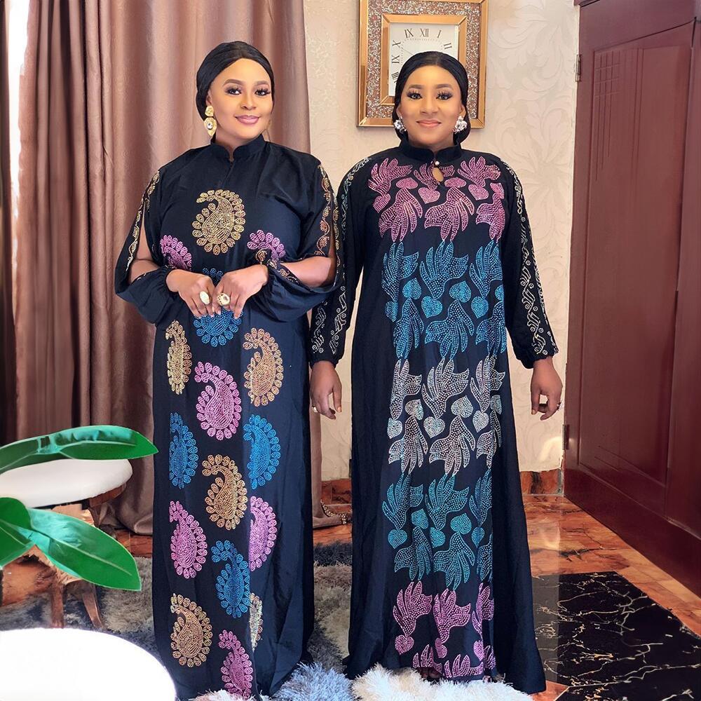 Cross-border African Mom Large Size Dress Elastic Heavy Industry Front and Back Color Hot Drilling Chiffon Sleeves Source Spot