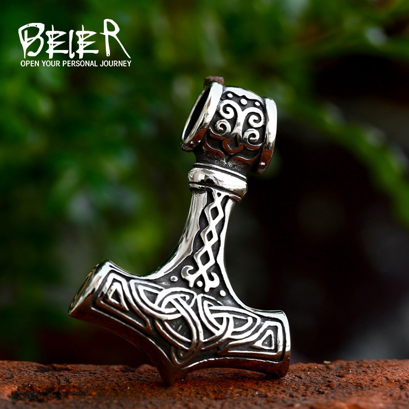 beier foreign trade Nordic Viking Celtic knot titanium steel pendant wholesale new stainless steel Thor hammer pendant