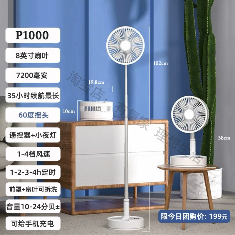 ADYSS folding retractable fan desktop floor-standing household silent charging portable large wind power fan shaking head