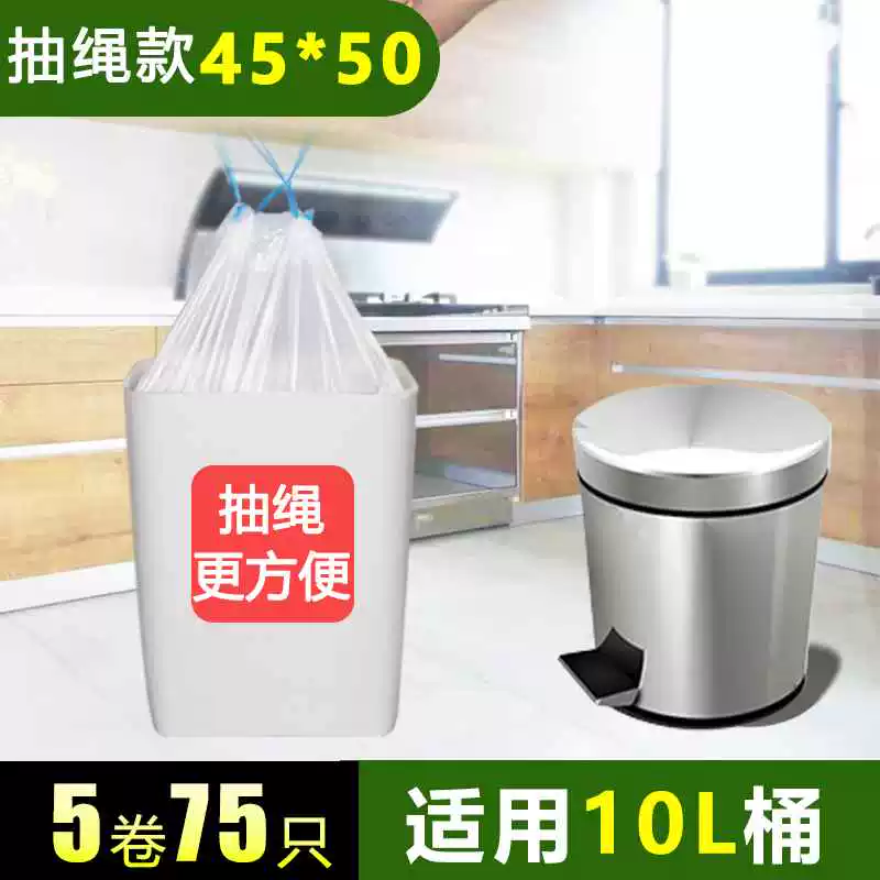 Large drawstring garbage bag household portable kitchen bucket special thickened automatic closing household roll rope