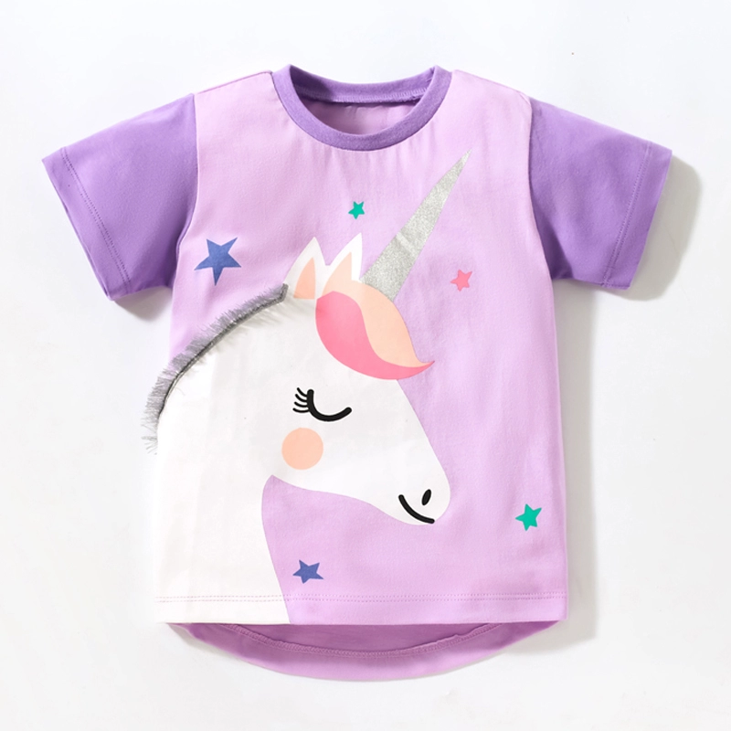 Purple patchwork summer girl unicorn short sleeve T-shirt