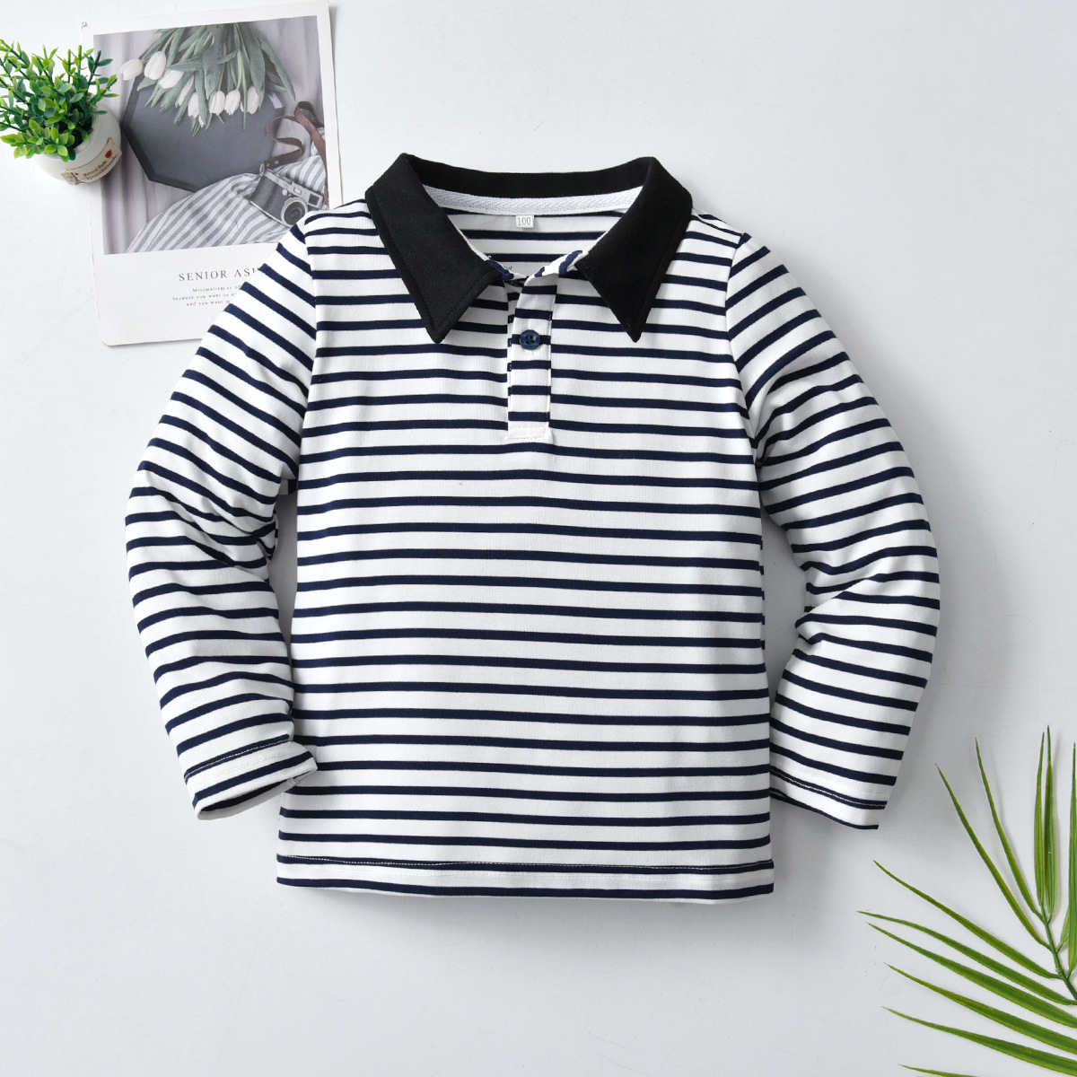 2022 cross-border boys’ striped polo shirt top small and medium children’s treasure color matching long sleeve T-shirt polo shirt super handsome