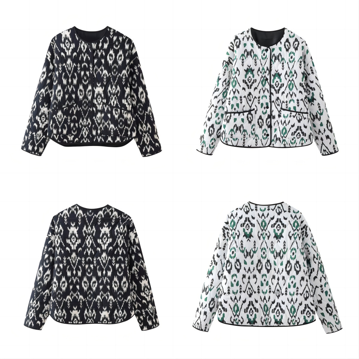 A generation of foreign trade women’s 2024 spring new European and American cross-border women’s street fashion printed quilted jacket