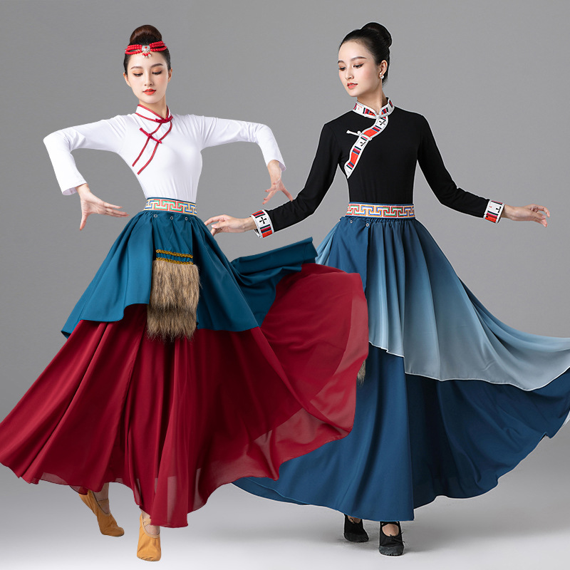 Mongolian Dance Performance Costume Female Ethnic Minority Tibetan Costume Large Dress Square Dance Student Art Test Practice Dress