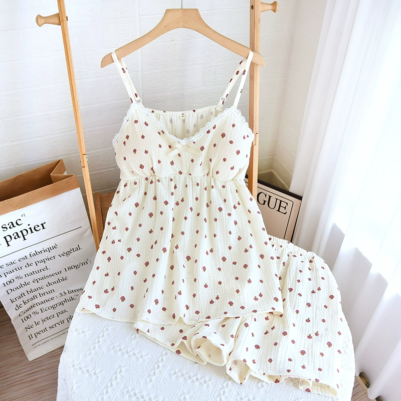 Pure cotton women’s suspender shorts double-layer home clothes pajamas