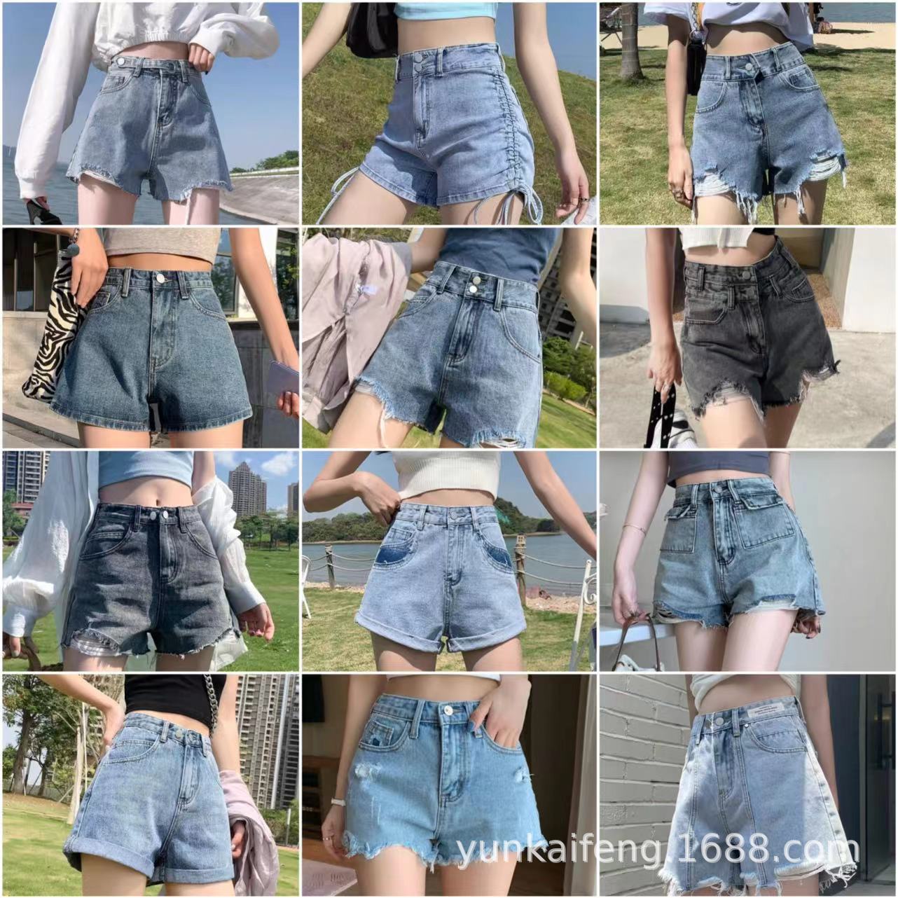 European style frayed straight Denim shorts women’s high waist slimming wide leg pants thin summer New loose slimming casual pants