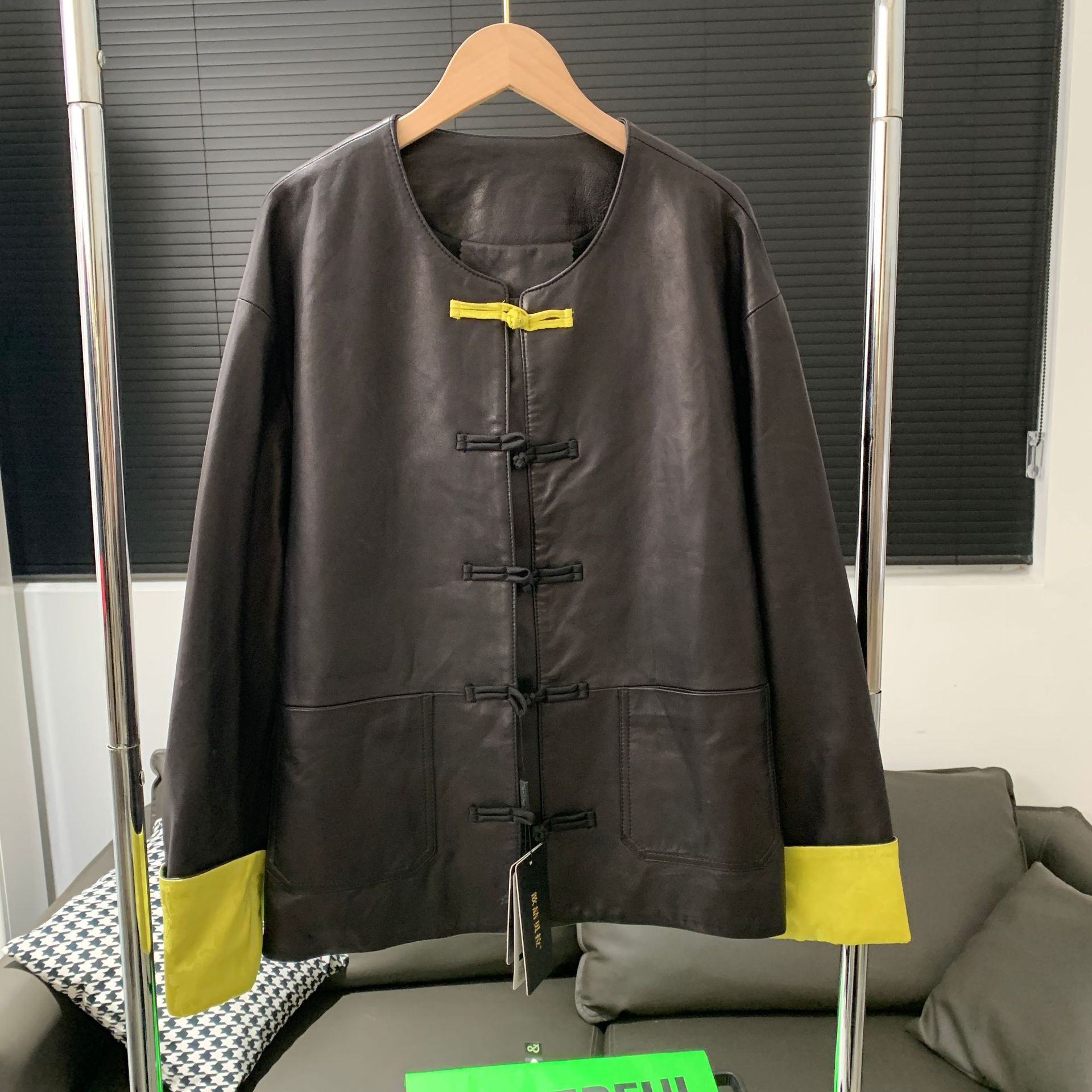2024 Spring and Autumn New Genuine Sheepskin Vegetable Tanned Leather Coat New Chinese Contrast Color Button Loose Leather Jacket Coat