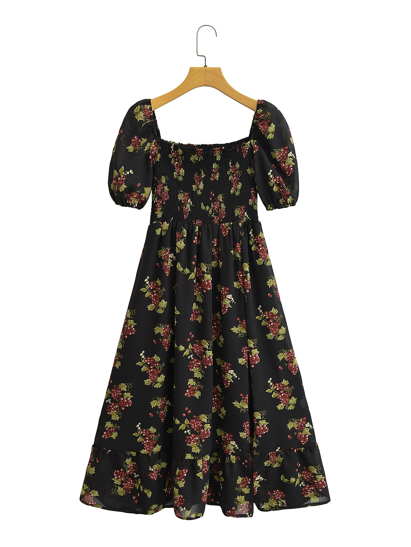 2023 Autumn Foreign Trade Women’s Clothing New Watermark Square Neck Printed Short-Sleeved Dress 23038