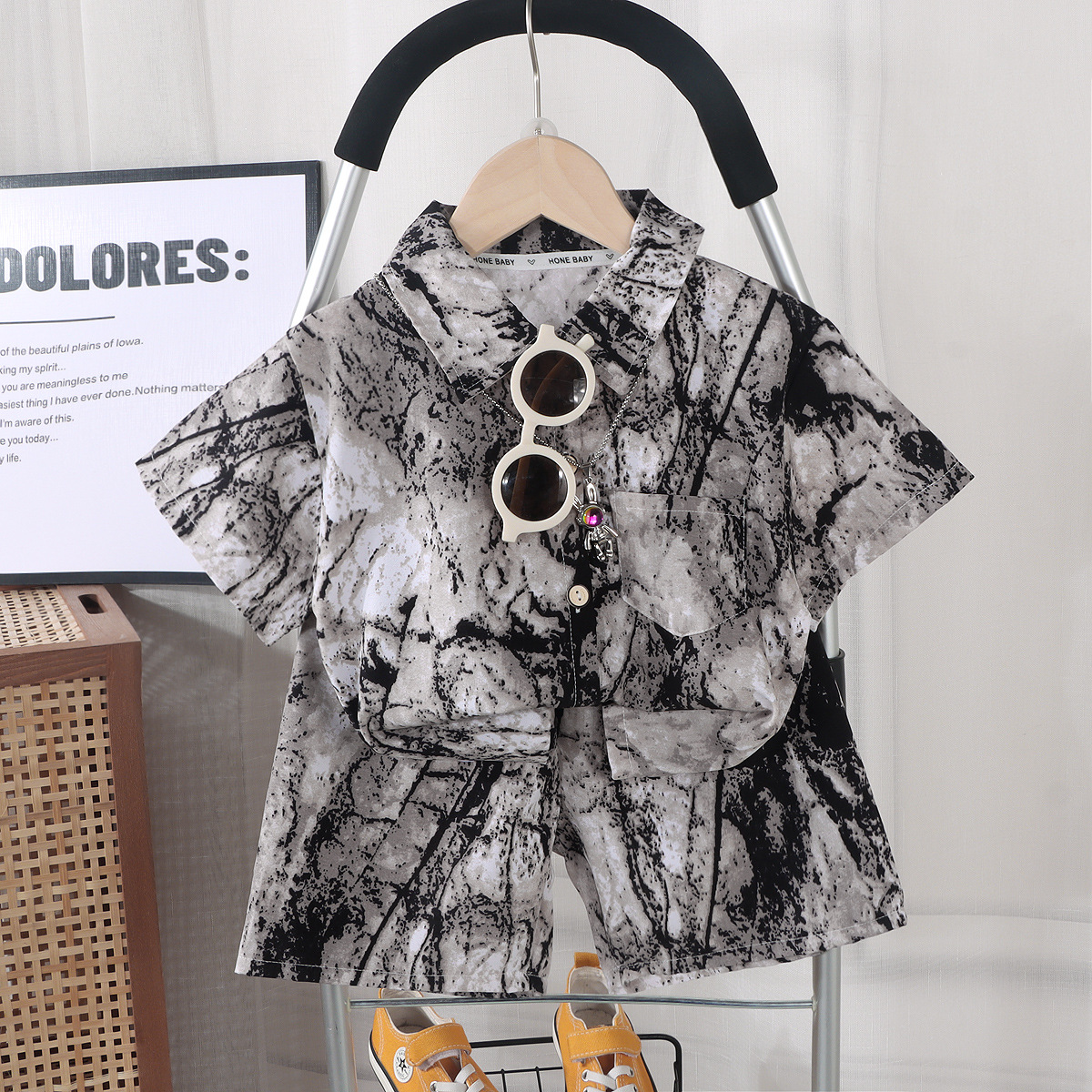 New Children’s Shirt Suit Summer Dress Boy’s Short-sleeved Casual Fashionable Thin Mid-size Children’s National Style Ink Painting Suit