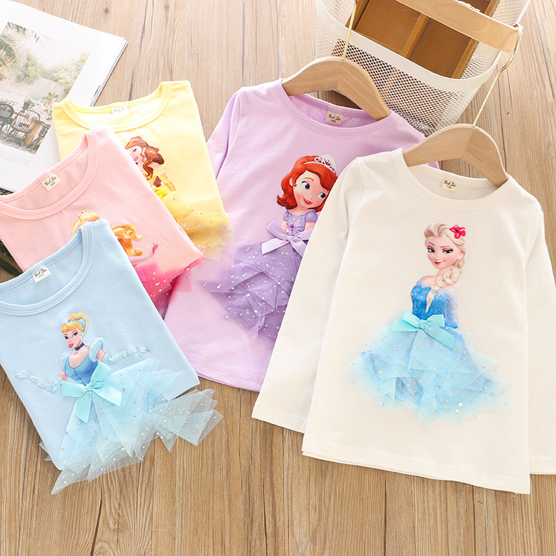 Girls Princess Bottoming Shirt 2023 Autumn New Long Sleeve T-Shirt Little Girls Amazon Cross-border Source Manufacturers