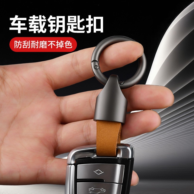Cyber Celebrity Frosted Leather Car Car Car Keychain Short Light Luxury Keychain Men’s and Women’s Laser Logo Metal Pendant