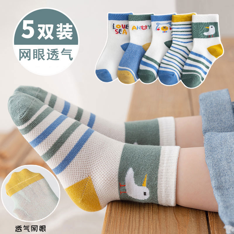 Summer Children’s Mesh Socks 2024 Woodpecker Baby Socks Medium Tube Breathable Sweat Absorbing Baby Socks for Boys and Girls