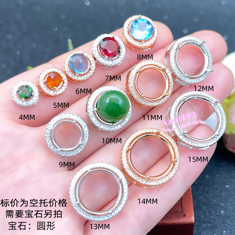 15mm empty -bearing round women’s inlaid gem silver pendant