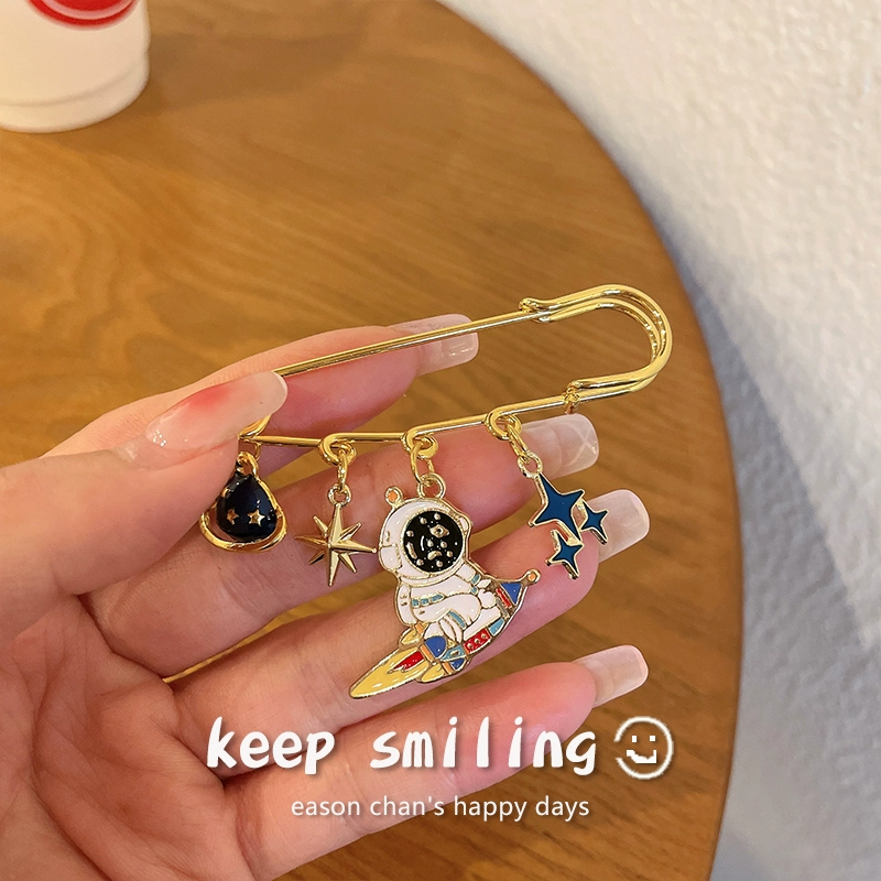 Starry sky astronaut cartoon brooch ins trendy creative six-pointed star element pin student small gift personalized accessory