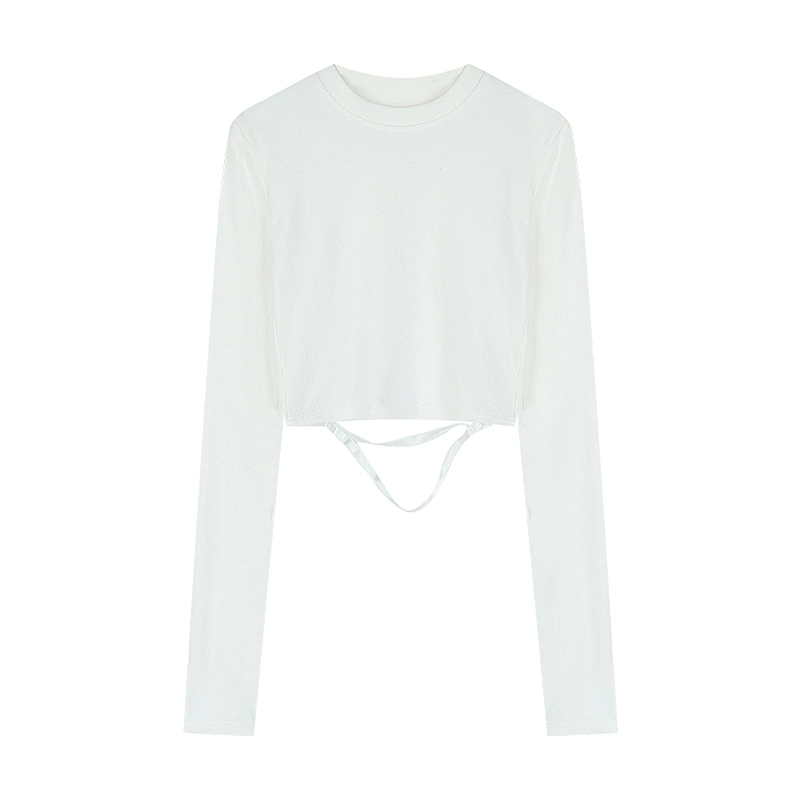 plus size Women’s Summer New Round Neck Contrast Color Drawstring Design Sense Slimming Short Sleeve Top Stitching Korean White Cotton