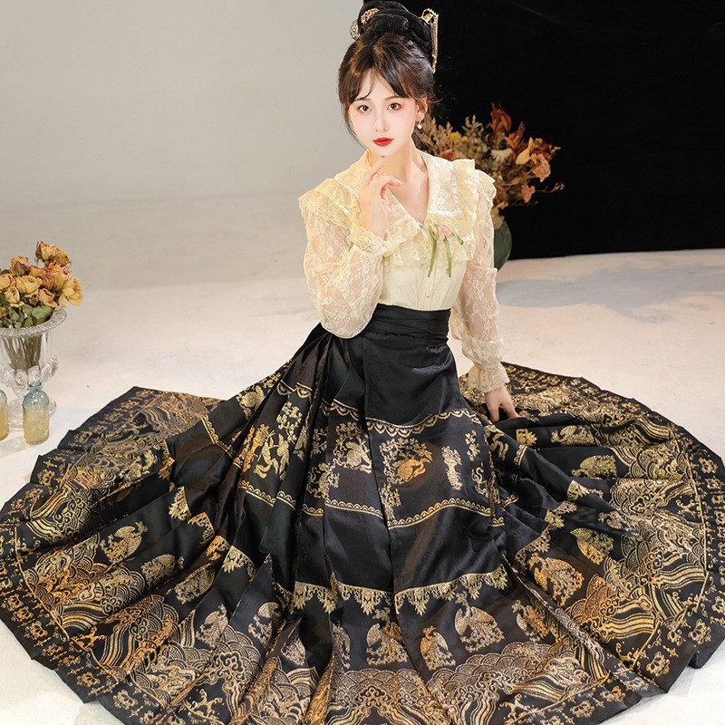 Hanfu Women’s Woven Gold Horse-faced Skirt Daily Red Skirt Chinese Style Commuter Improved Ming Style Long Skirt Spring Style