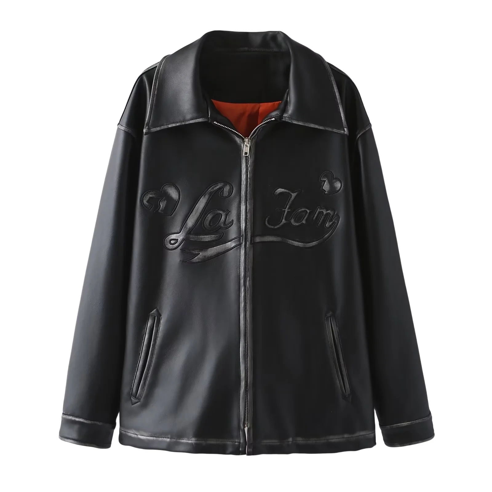 American-style retro letter embroidered pu leather coat flight jacket washing and returning craft hand-brushed faded hot girl style